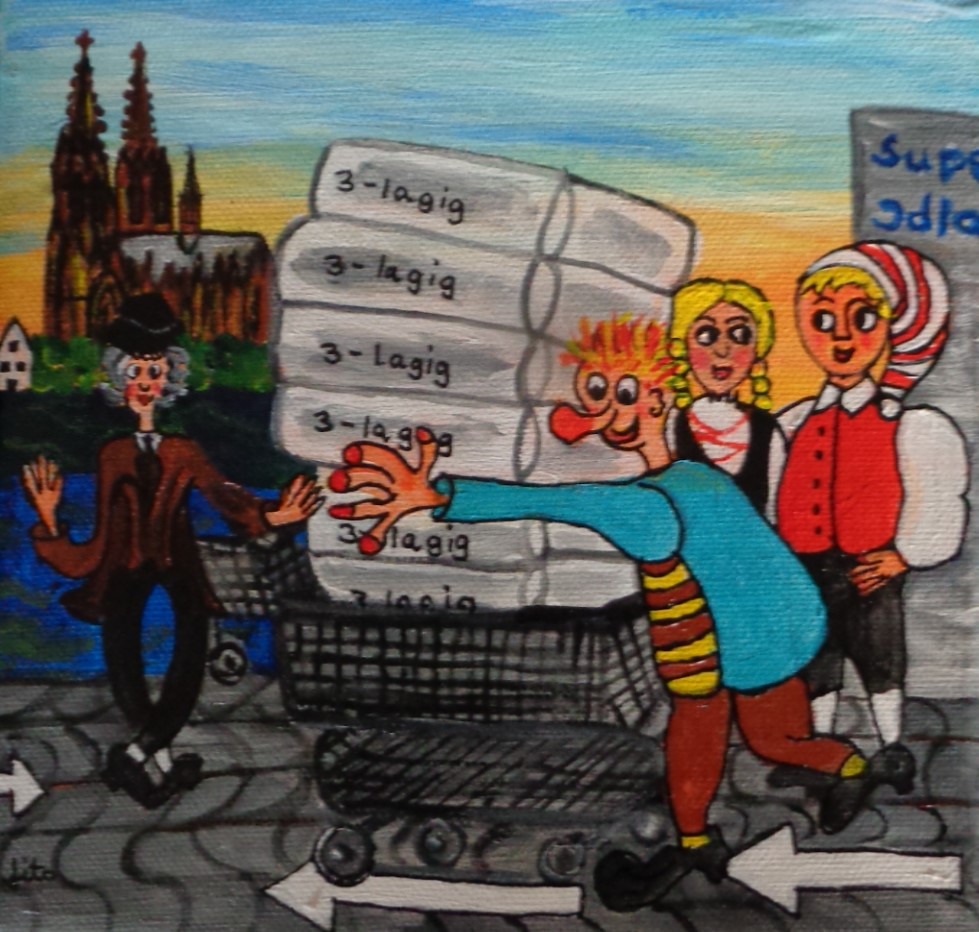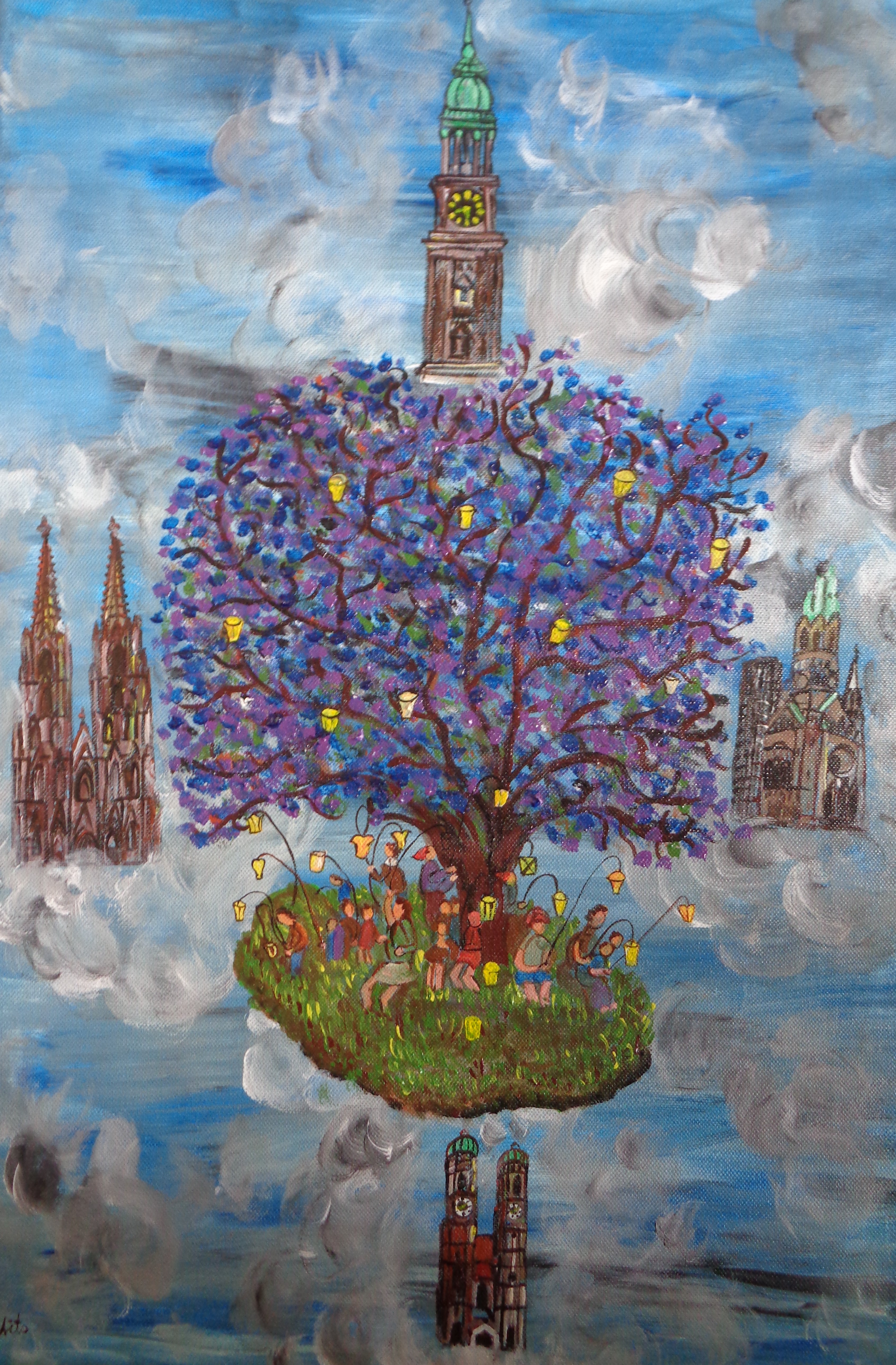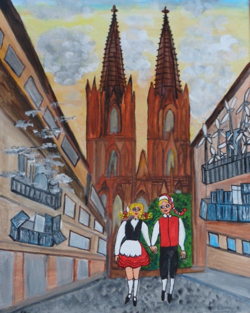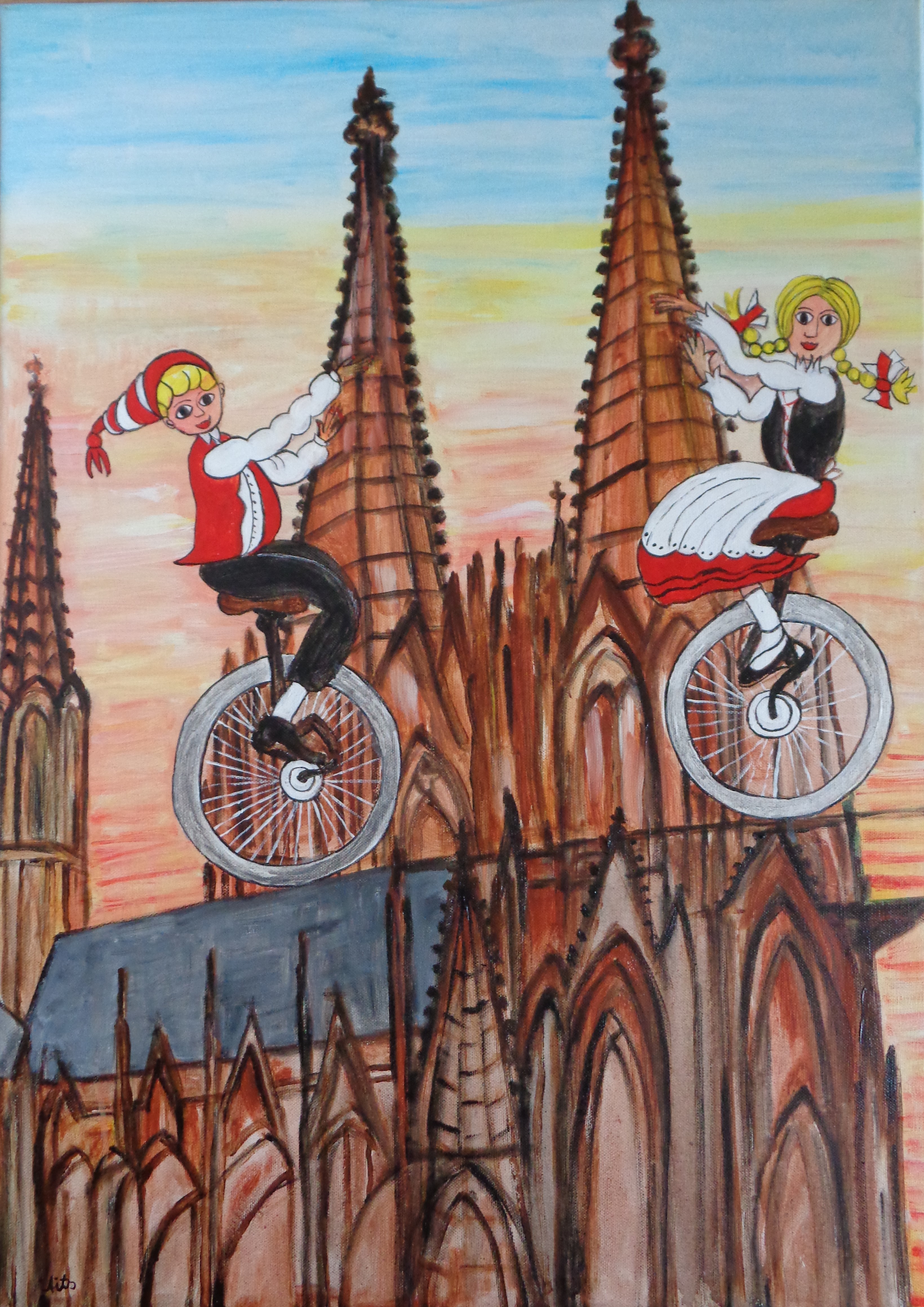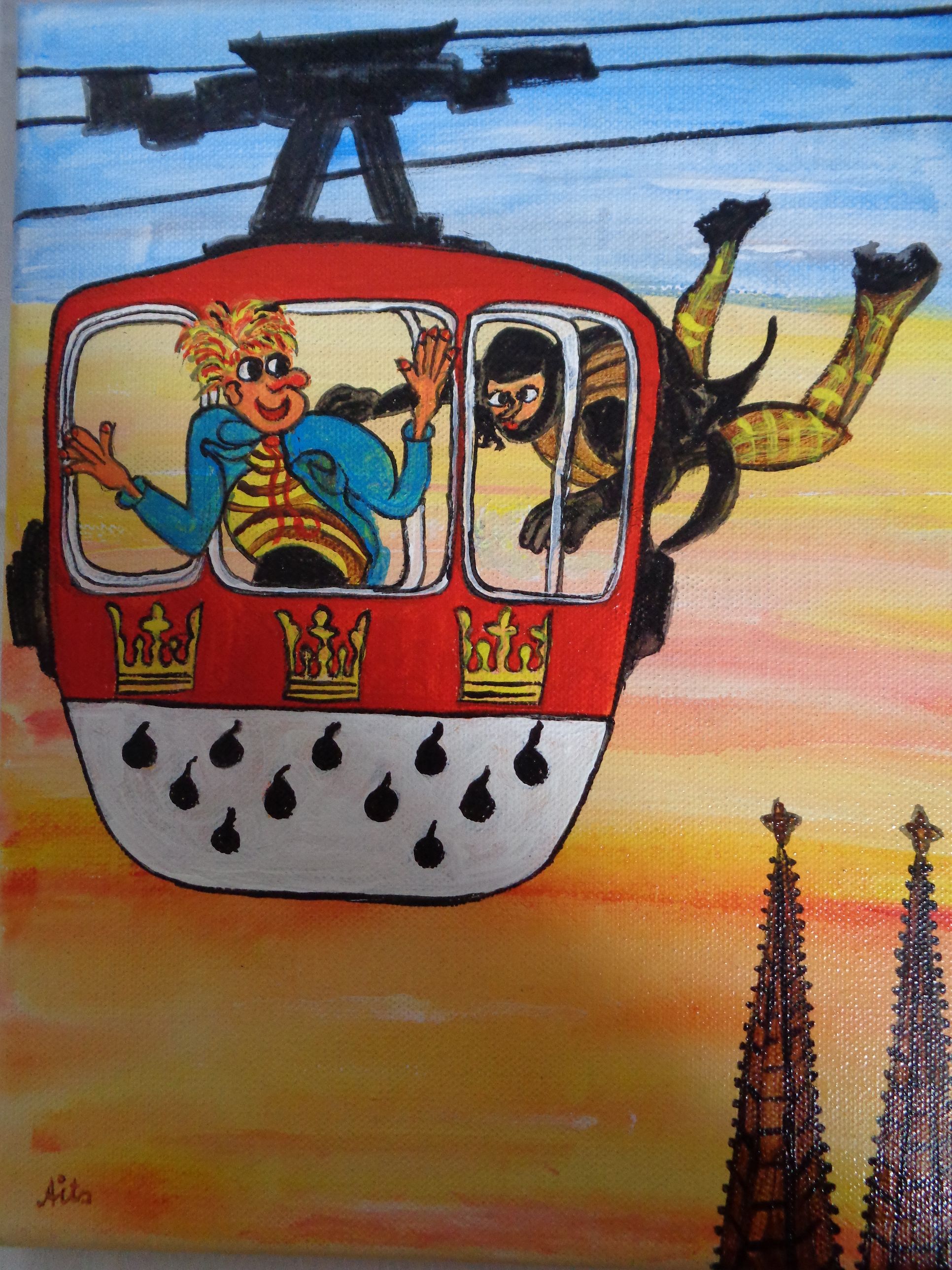 Kölner Tanzpaar 30×40 120 €*Puppenspieler 40×50 200 €*Hänneschen auf Schaukel 20x20x *Angler 30×40 *Luftblasen vor Dom 30×40 120 €*Herzen über Mond 40×70 *Skyline Köln 40×60 240 €*Wir bringen den Stein ins Rollen 50×70 370 € * Kölner kommen aus dem Weltall 40×50 *Gründung Kölns 80×100 *Auf dem Buddelschiff mit der Goethe 60×80 * Der geflügelte Ford in Köln 50×70 *Ich bin schon mal ausgestiegen 30×40 120 € *Seifenblasen vor Köln 20×20 *Insel der Seligen 40×50 200 € Ostfriesen auf Wildgänsen 50×70 350 €Hertie Abriss Köln 40×60 200 € *Einräder über Domspitzen 50×70 350 € *Lavendel 30×40 120 €*Fallschirme über dem Stadion 18×23,5 *Baum des Lebens 30×40 120€