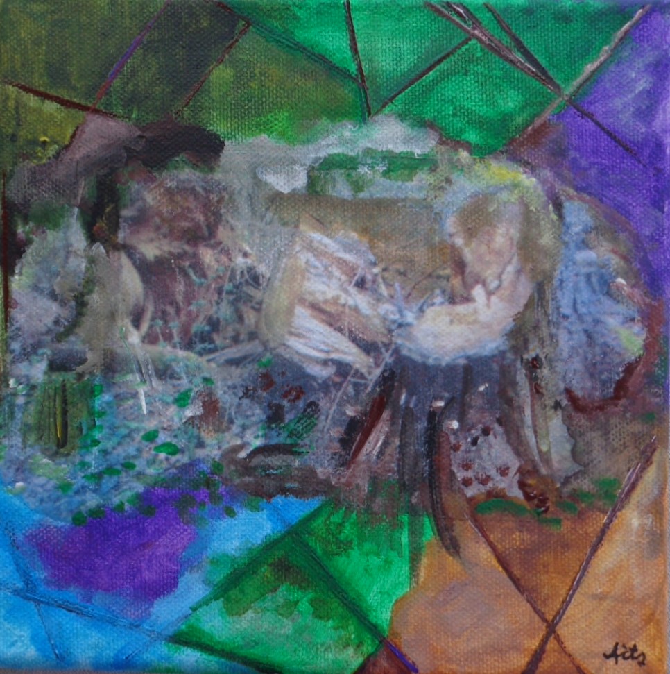 10 x 10 , Acryl auf Leinen mit bemalten Kieselsteinen, pro Stck. 29 €
