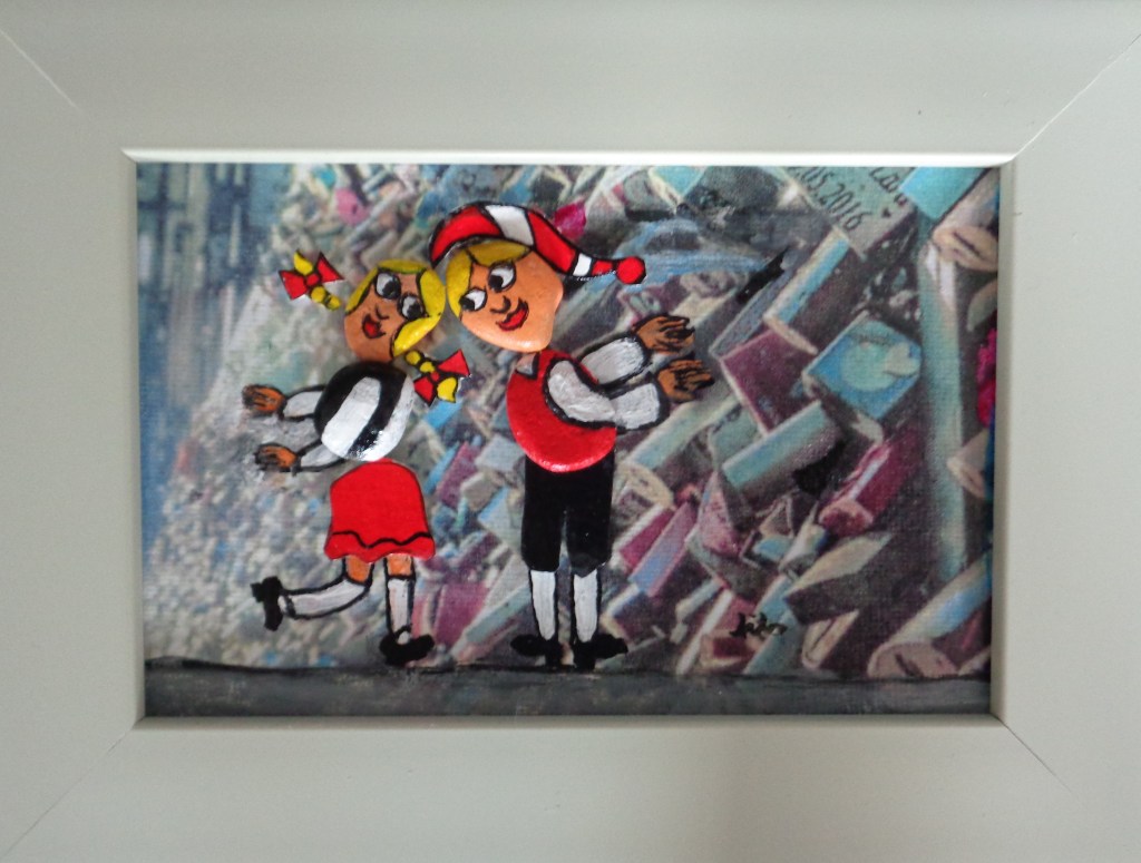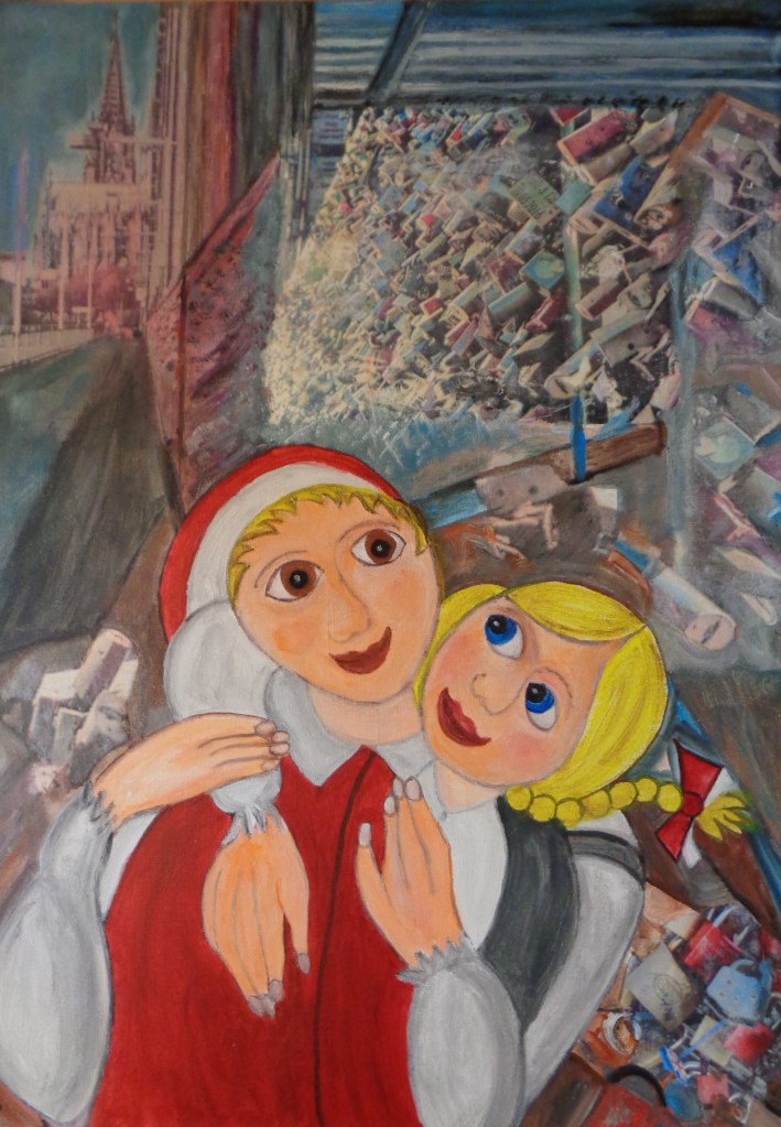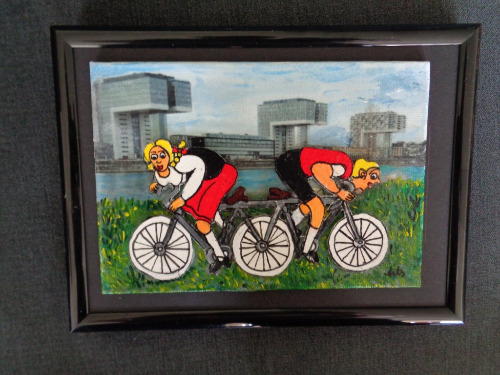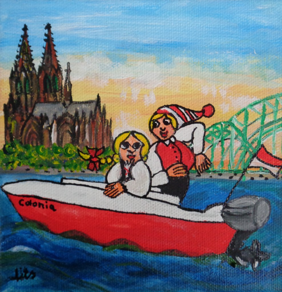 Alles in der Schwebe Acryl auf Leinen bemalte Rheinkiesel 10×10 39,- €Boot Ursula Acryl auf Leinwand 3D 15×15 29,- €Frosch und Schnecke Acryl auf Leinwand Mixed Media 20×20 39,- €Handbemalte Gänseeier Hänneschen und Bärbelchen, Kölner Dom Stck. 15,- €Frösche Acryl auf LeinwandBemalte Rheinkiesel15×1525,-FroschAcryl auf LeinwandMixed Media15×1519,- €Die Vier Acryl Mixed Media 3D 20×20 45,- €*Köln, Acryl auf Leinwand, 3D, 20×20, 59,-*Flug über Köln Acryl auf Leinwand Mixed Media 20×20 49,- €*Sängerinnen Acryl auf Leinwand bemalte Rheinkiesel mixed Media 10×10 39,- €*Liebesschlösser, 10,5×9, mit Rahmen, Leinen auf Pappe. Acryl, Mixed Media, bemalte Rheinkiesel, 35 €*Gegeneinander, 10,5×15, Acryl auf Leinen (Pappe), 3D, Mixed Media, mit Rahmen, 30,- €*Bötchen fahren, 13,5×9 (innen), 14×19 (außen),Acryl auf Leinen (Pappe), bemalte Rheinkiesel, 3D, mixed media, mit Rahmen, 30 € * Besuch im Zoo, 20×20, Acryl auf Leinen, bemalte Rheinkiesel, 3D, mixed mediaSommer am Rhein Acryl, mixed media 20×20 59,- €Seilbahn, 20×20, Acryl auf Leinen, bemalte Rheinkiesel, 59,- € *Kölner Motive