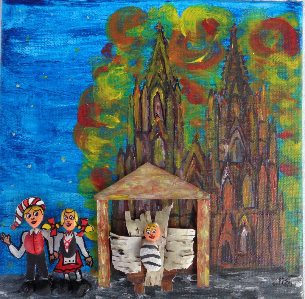 Trommler 30×40 120 € * Pedalo vor Dom 20×20 *Moby Dick vor Köln 40×50 200 € *Badewannenkapitäne 40×30 120 € *Kölner Lichter 50×70 220 €Bileam`s Engelerscheinung 40×40 160 €Engel der Kulturen 50×70 220 €Seraphim 40×50 150 €Kölner im Weltall 40×50 190 €Der Zog kütt 30×40 120 €Hennes auf der Nase herum tanzen 60×70 290 €Tanz an Wasserspeiern 60×70 320 € Nicht auf der Nase herum tanzen 30×40 120 € *