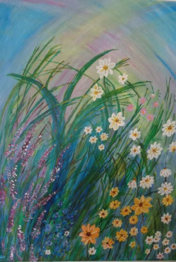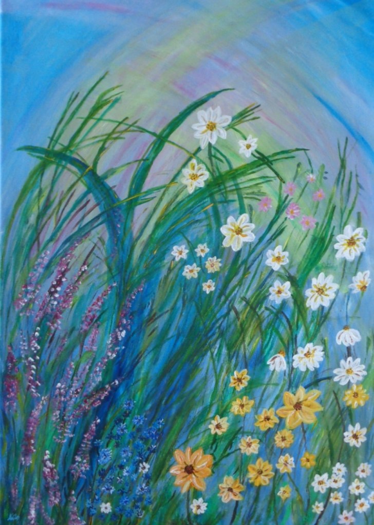 Der Flug über dem Dom, Acryl auf Leinen, 50×70, 110,- €Wildblumen, Acryl auf Leinen, 50×70, 120,- €