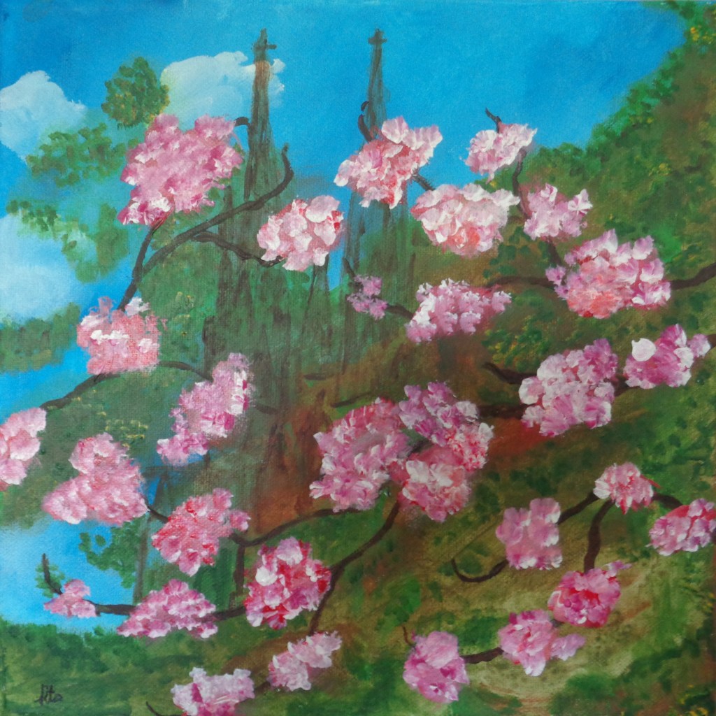 Kirschblüte in Köln, Acryl auf Leinen, 30×30, 59,- €Agrippina Colonia, Acryl auf Leinen, 50×70, 190,- €